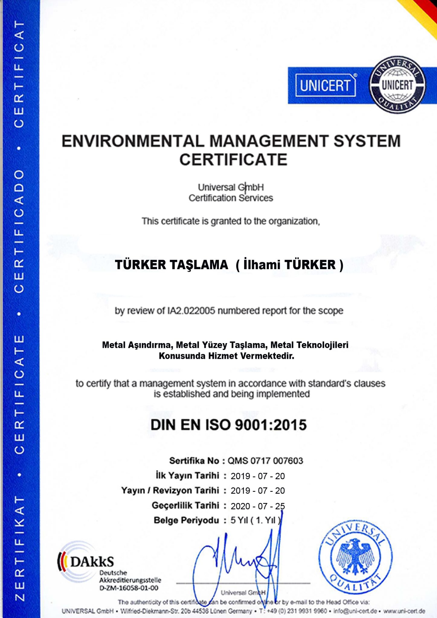 Sertifikalarımız